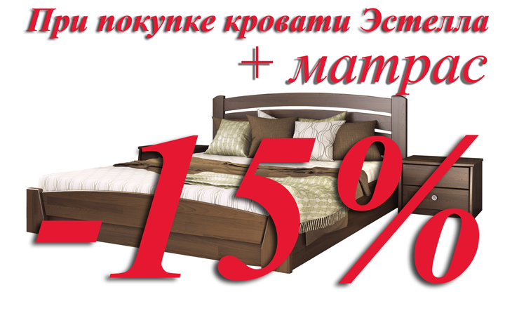 С  01.12.2020 по 31.05.2021 при покупке кроватей ТМ Эстелла + матрас скидка 15%