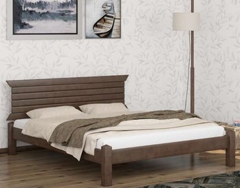 Двуспальная деревянная кровать изготовлена ​​из натурального соснового массива. Кровать укомплектована гнутыми ортопедическими ламелями.