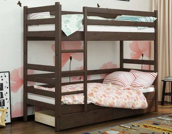 Детская двухъярусная кровать Соня изготовлена из массива сосны и укомплектована ортопедическими ламелями.