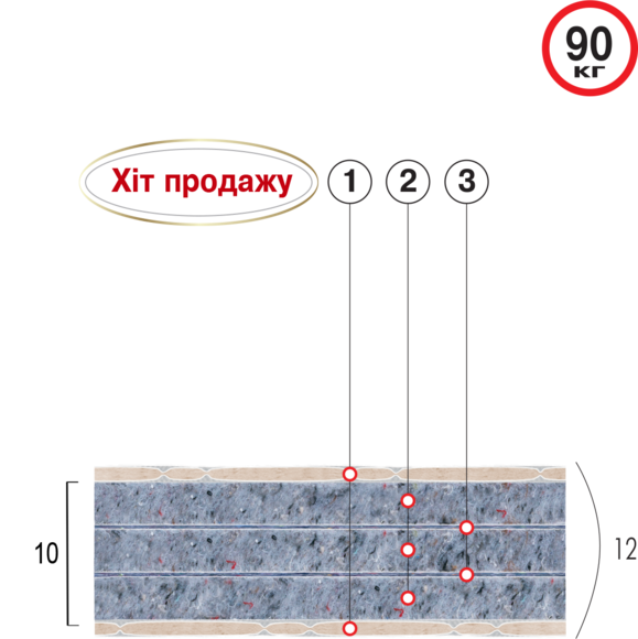 • облицовочная ткань матраца - жаккард (Полиэстер - 55%;Полипропилен - 45%);