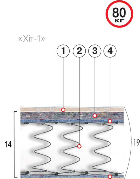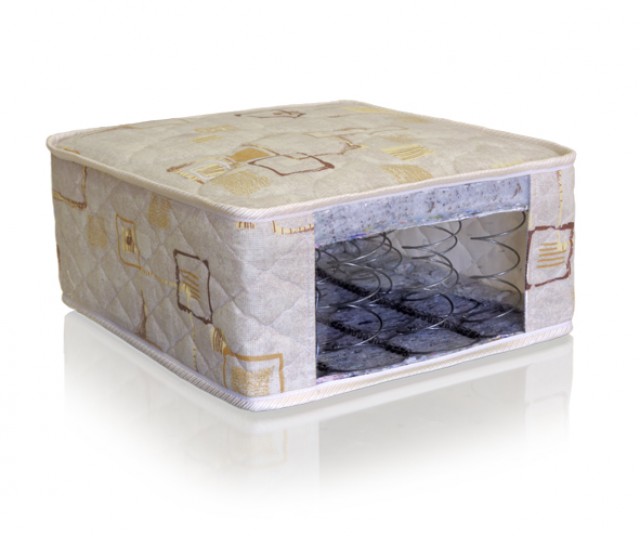 • в качестве мягкого настила - нетканый материал «Спрут» и «Термофлекс» (полиэфирные волокна с добавками натуральных волокон) - известный как альтернатива поролону обладающий множеством важных характеристик: трудно горюч, не склонен к распаду и безопасен для здоровья. Мягкие настилы защищены от блока пружин жестким настилом - нетканым материалом «Термовойлок», что исключает их повреждение и миграцию.