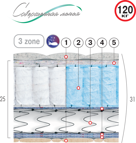 * [ 25 ] -регламентированная высота матраца (см), ( 31 ) -габаритная высота матраца (см)