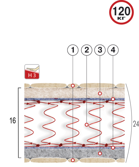 - Несущая способность матраса - до 100 кг на одно спальное место.