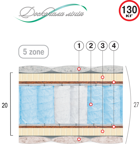 * [ 20 ] -регламентована висота матраца (см), ( 27 ) -габаритна висота матраца (см)
