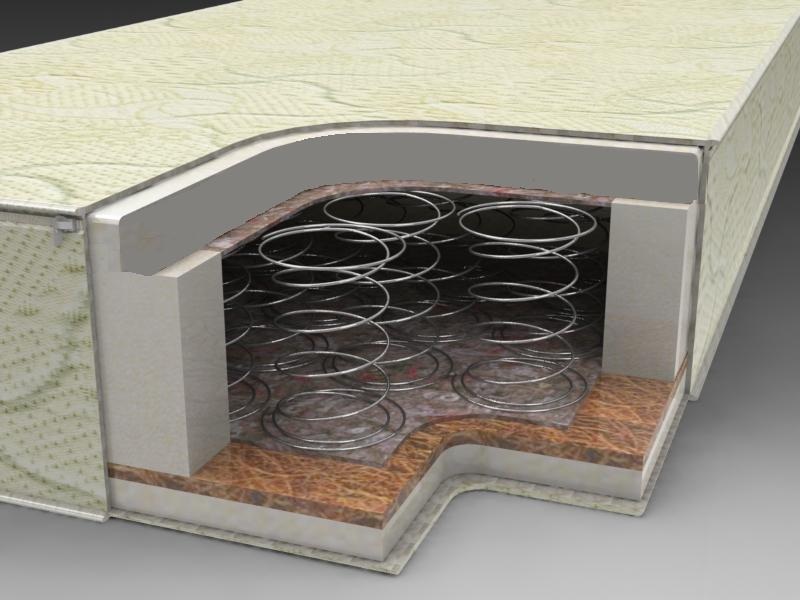 • Еврокаркас обеспечивает идеальную форму боковой части матраса и повышает жесткость края матраса.