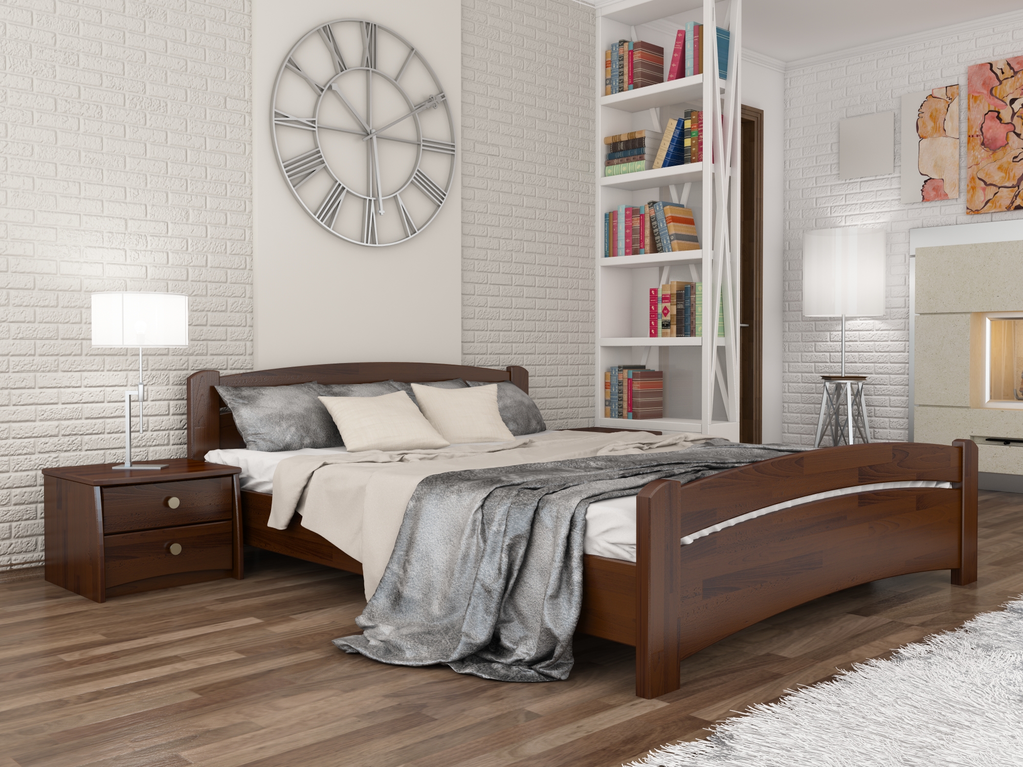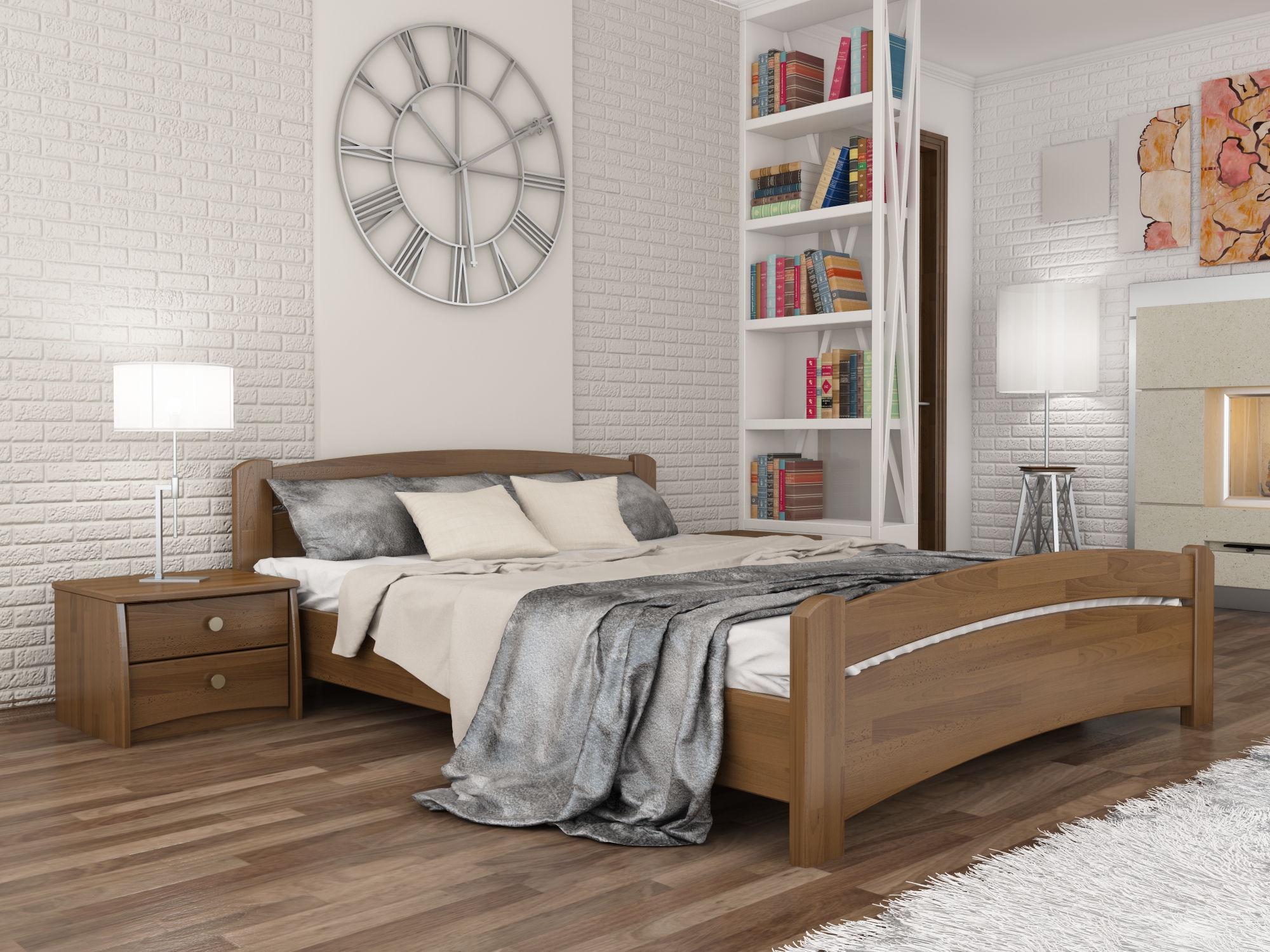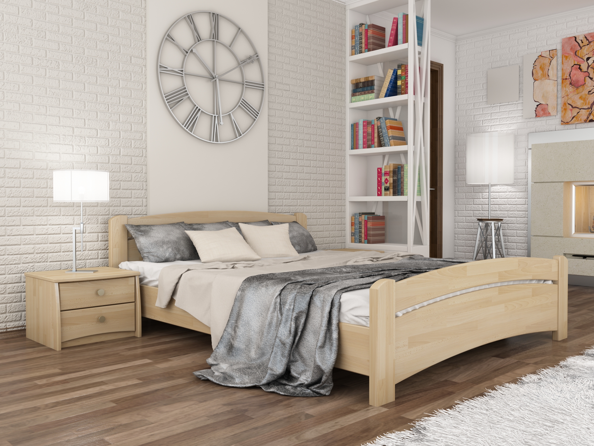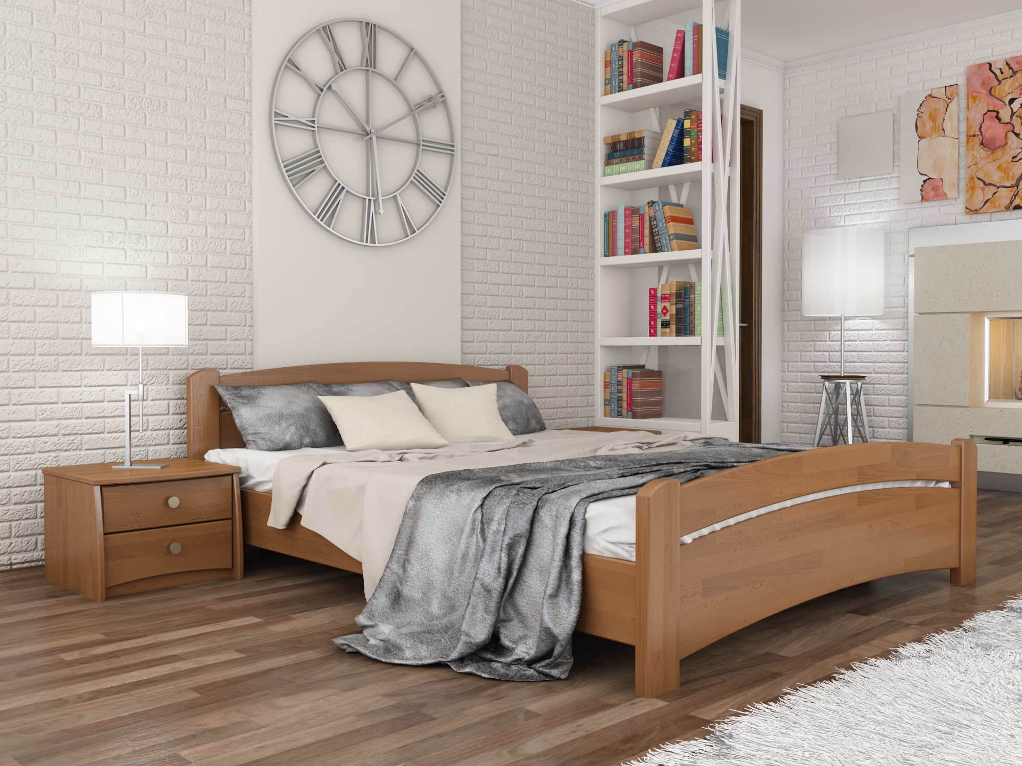 Деревянная кровать из массива или щита бука. В дизайне преобладают массивность, плавность линий и округлость форм. Исполняется в любых цветовых вариантах. В любом интерьере смотрится богато и изысканно. Кровать комплектуется выгнутыми деревянными ламелями. Изготавливается только из натурального бука.