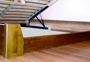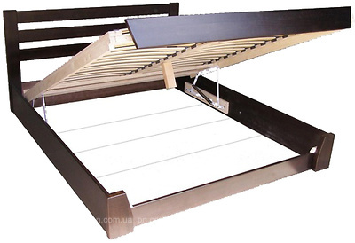 Целиком и полностью деревянная кровать с подъемным механизмом на газовых лифтах. Очень легко поднимается и экономит в спальне много места. Кровать комплектуется выгнутыми деревянными ламелями.