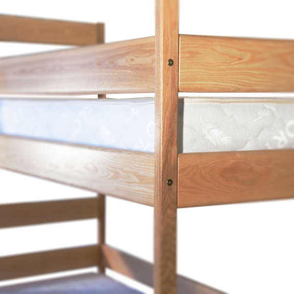 Ясна выполнена в так называемом украинском аналоге дуба – ясене и буке. Конструкция кровати разборная и позволяет разъединить ярусы на две полноценные одноместные кровати. Какие же преимущества для вас? Если у вас два ребенка то, по мере подрастания одного из них, вы можете демонтировать и разбирать кровати: добавлять ярусы, использовать ярусы отдельно друг от друга. Не стоит беспокоиться за качество и надежность: не зависимо от количества разборок, мебель останется такой же крепкой. Именно благодаря такому качеству кровать и получила свое второе имя – трансформер, так как совершенно не боится трансформаций. Когда оба ваши ребенка подрастут, не спешите списывать кровать со счетов, вы можете отдать ее своим знакомым или друзьям, у которых тоже есть дети. Время службы этой мебели практически не ограничено.