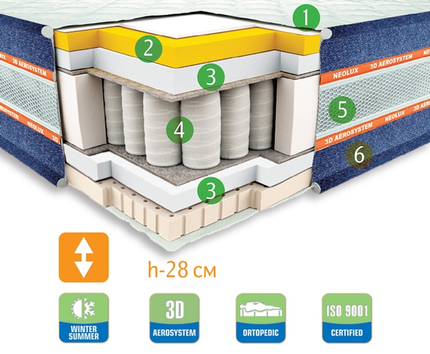 Матрас «Texas» — воплощение комфорта среди матрасов. Ощутите уникальное сочетание ткани «ComfoTex» и инновационной пены с памятью формы «Memory» для максимального эффекта релаксации и глубокого сна. Комфорт, дизайн и эргономичность — вот основные качества матраса «Texas», созданного с помощью инновационных технологий, направленных на борьбу со стрессом и усталостью. 3D Aerosystem создаст комфортный индивидуальный микроклимат спального пространства. Слой «Memory» с эффектом памяти, повторяя каждый изгиб вашего тела, позволит максимально расслабиться и восстановить жизненные силы во время сна.