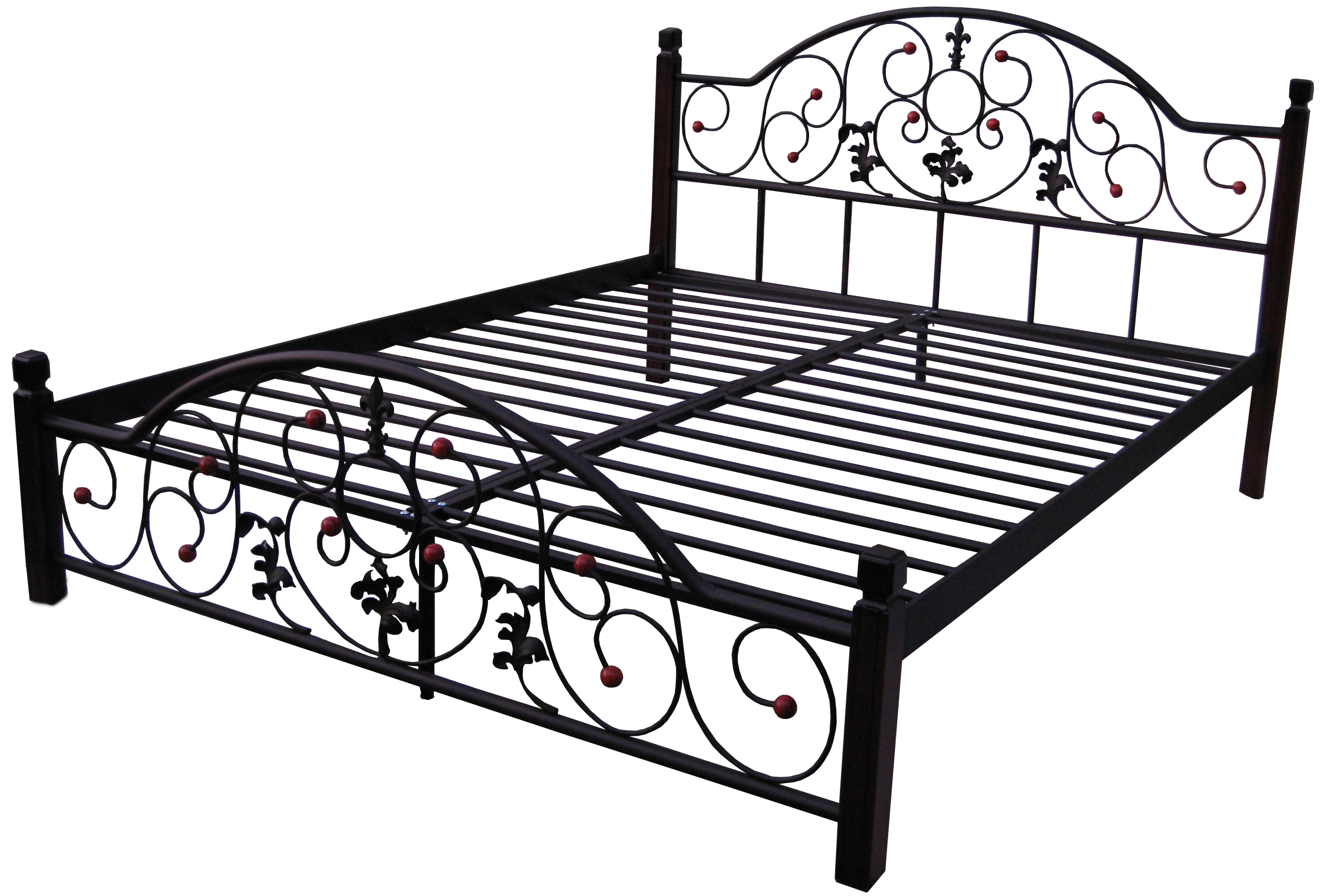 Жозефина имела большой успех, ее грация и манеры соответствовали статусу жены императора, она была создана, чтобы покорять. Такой своенравный и величественный характер и у этой кровати. Она для желающих создать шикарный классический интерьер. Изголовье и изножье богато украшены растительными вставками и королевской лилией. А так же, вензелями с декоративными наконечниками, подчеркивающих цвет деревянных ножек. Цвет дерева идеально сочетается с цветом металлических элементов кровати. Можете выбрать черный бархат, черную медь, черное золото, белый бархат и др. эти оттенки каждый по-своему эффектны. Темные цвета окраски комплектуются ножками цвета яблоня, а светлые цвета окраски белыми.