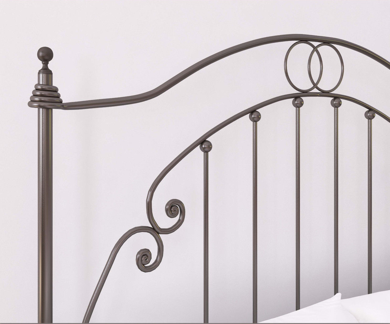 Ажурная кровать и не менее символичная. Два кольца- символ любви и прочности отношений. На вид ? хрупкая, однако, достаточно прочная. Металлический каркас и изголовье, изножье крепко соединены между собой. Поэтому, данная модель отлично подходит для домов отдыха и частных отелей. Присмотреться к ней стоит и родителям чудной принцессы. Т .к эта кровать украсит интерьер детской для девочки в замковом стиле. Посмотрите на навершия, они в форме конических шпилей замков. Так и хочется окунуться в сказку. Вокруг прозрачные шифоновые занавески и рюши, сплошная романтика. Эта модель смотрится великолепно и в темном и в светлом.