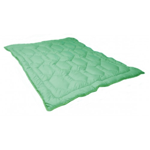 Одеяло с наполнителем из бамбука и силиконизированного полиэфирного волокна обладает повышенной антибактериальной способностью. Бамбуковое волокно за счет своей пористой структуры имеет хорошую воздухопроницаемость и гигроскопичность, что обеспечивает оптимальный уровень влажности во время сна, а добавление полиэфирного волокна придает упругость и объём.