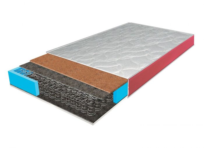 Дополнительную жесткость с одной стороны матраса обеспечивает наличие кокосового полотна. Это натуральный материал, который на долгие годы сохраняет упругость и жесткость. Инновационный материал «Ortofoam» равномерно распределяет нагрузку, придает мягкость с другой стороны матраса. Пружинный блок Bonnel создает оптимальную поддержку позвоночника.