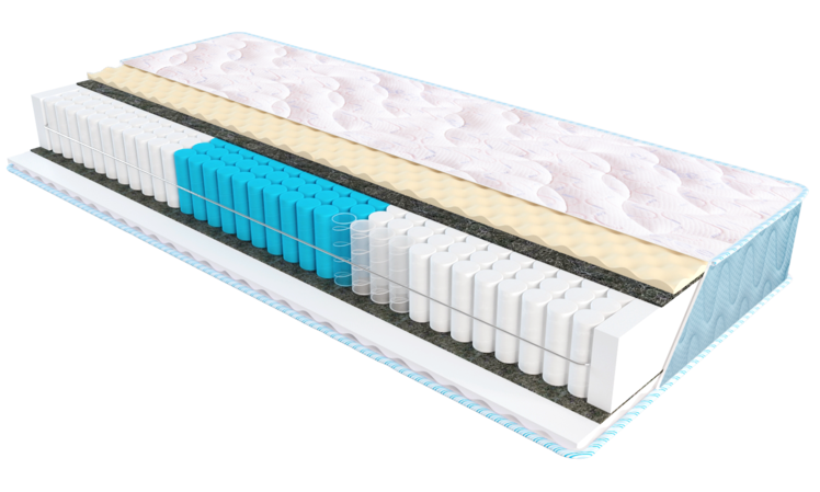 Трехуровневая система независимых высоких пружин Anatomic Multy Zone 3, усиленная по периметру рамой из прокатной стали. Применение высоких пружин увеличивает степень упругости матраса, тем самым повышая эффективность поддержки тела во время сна. Зональное распределение свойств пружинного блока обеспечивает лучшую анатомическую поддержку позвоночника и расслабление мышц.