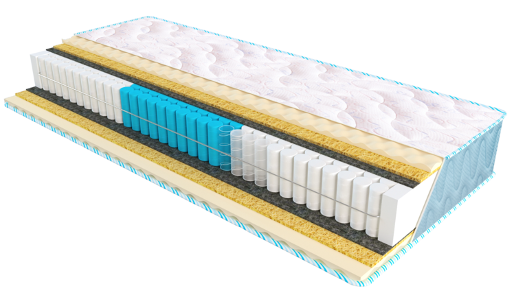 Трехуровневая система независимых высоких пружин Anatomic Multy Zone 3, усиленная по периметру рамой из прокатной стали. Применение высоких пружин увеличивает степень упругости матраса, тем самым повышая эффективность поддержки тела во время сна. Зональное распределение свойств пружинного блока обеспечивает лучшую анатомическую поддержку позвоночника и расслабление мышц.