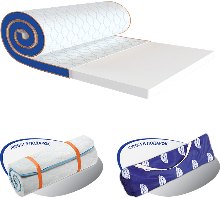 Матрас легко самостоятельно скручивать и фиксировать ремнями с "липучками" в максимально компактном виде, чтобы сэкономить место для хранения.