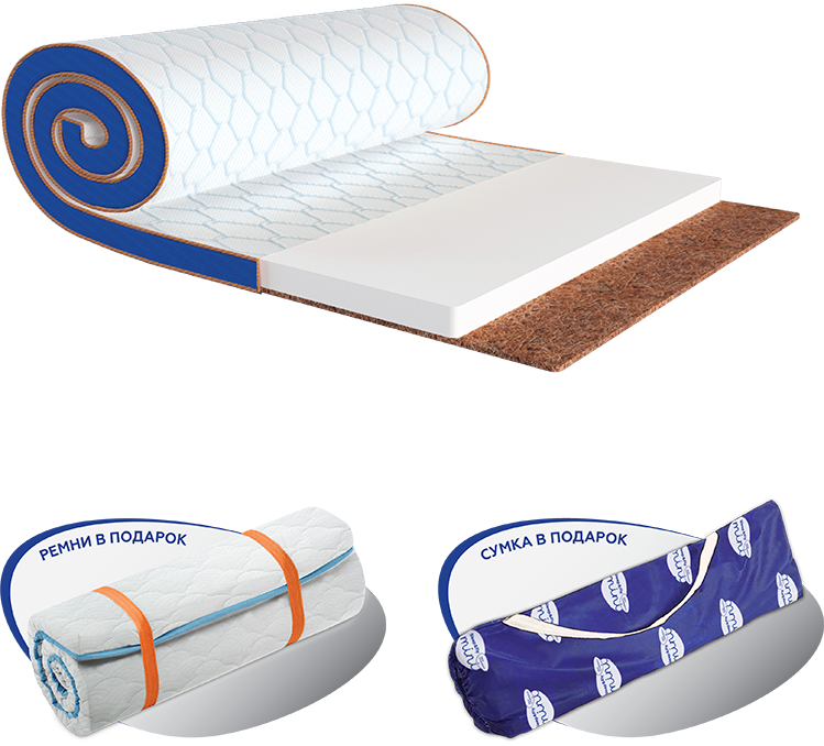 Матрас легко самостоятельно скручивать и фиксировать ремнями с "липучками" в максимально компактном виде, чтобы сэкономить место для хранения.