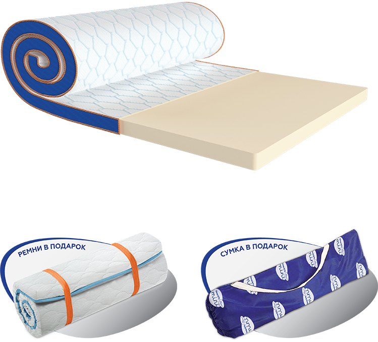 Матрас легко самостоятельно скручивать и фиксировать ремнями с "липучками" в максимально компактном виде, чтобы сэкономить место для хранения.