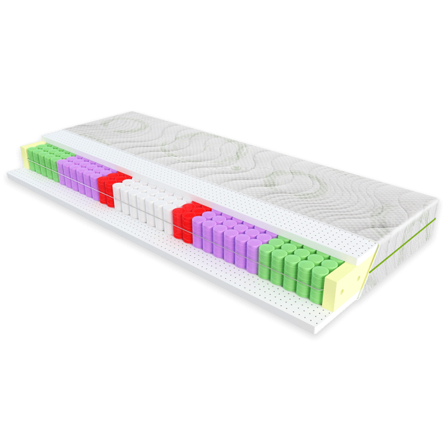 Многоуровневая инновационная система пружин Anatomic Multy Zone 7 разработана по принципу регулирования жёсткости за счет сжатия пружин различной высоты. Созданное напряжение в пружинах обеспечивает различную жёсткость и упругость в заданных зонах. Зональное распределение пружин обеспечивает надёжную поддержку и лучшие анатомические свойства матраса.
