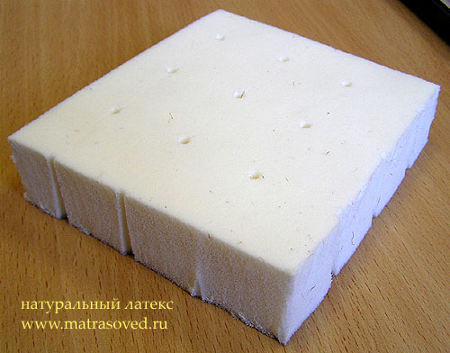 Чем ниже плотность пенополиуретана - тем хуже его долговечность, и ниже цена. Именно поэтому не стоит покупать самые дешевые беспружинные матрасы из ППУ - их срок службы будет недолгим. - Натуральный латекс - мягкий, эластичный и упругий наполнитель, более комфортен. Представляет из себя вспененный каучук, отсюда и "резинистые" свойства. Способен выдерживать большое давление и замечательно передает нагрузку на пружины. Натуральный на 20-60%. Отличается от пенополиуретановых пен большей мягкостью и упругостью. Матрасы с латексными прослойками приятнее по ощущениям, и несколько более долговечны.
