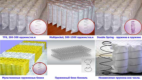 Пружинные блоки можно разделить на два больших класса - зависимые (непрерывного плетения, "боннель") и независимые.