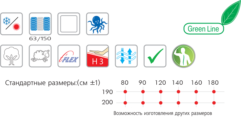 • чехол: стеганый на объемном наполнителе с волокнами шерсти и хлопка (эффект "Зима - Лето"), основная ткань - особый трикотаж, ткань бортовой ленты - жаккард