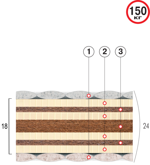 • Настил - латекс, 3 слоя, настил - кокосовая койра, 3 слоя
