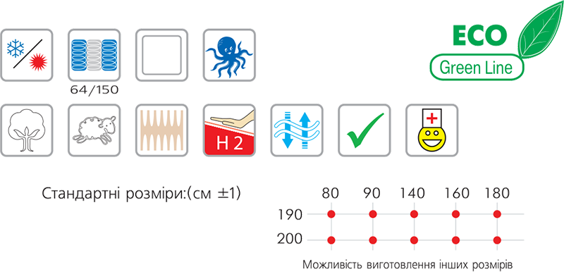 • настил: латекс (измененная высота латекса создаст новые ощущение при использовании данного матраца)